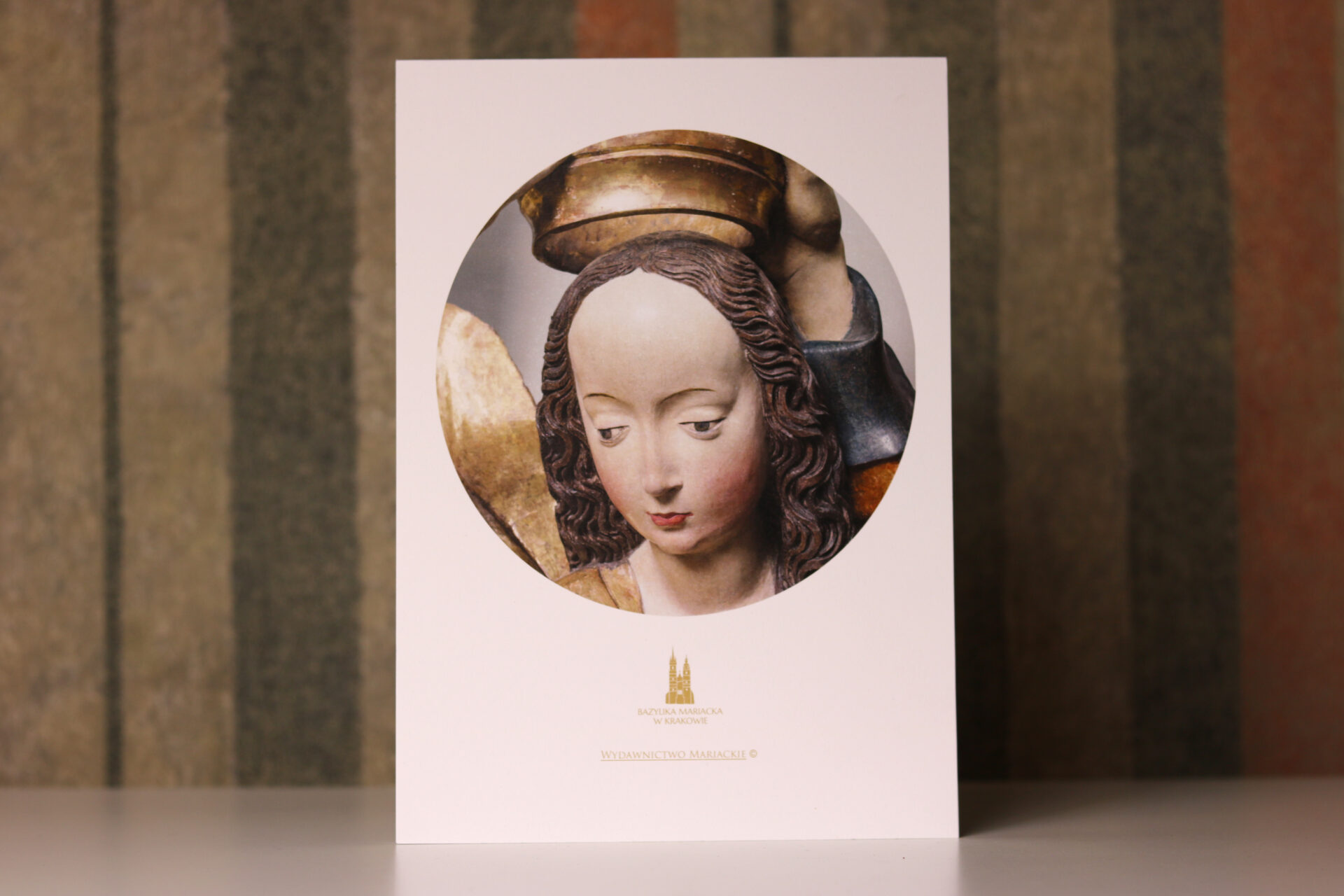 Brulion z wizerunkiem Maryi z sceny Koronacja Maryi z zwieńczenia ołtarza Wita Stwosza. Klejony, w formacie A4, gładki do zapisywania.