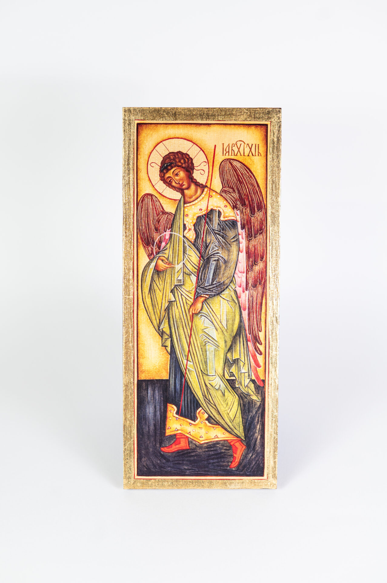 Ikona na desce, do powieszenia. Wykonana techniką decoupage.