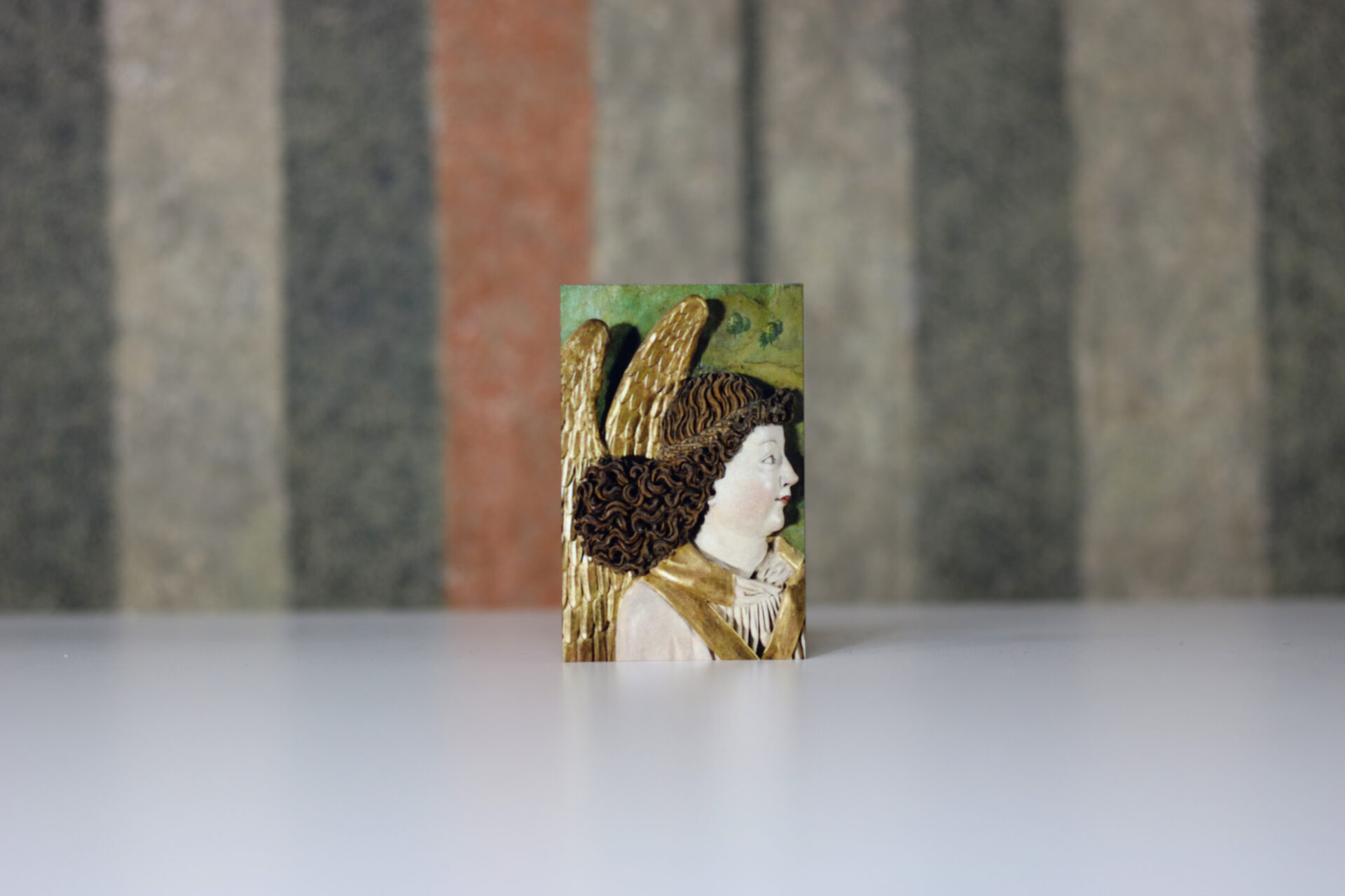 Magnes prostokątny miękki z portretem anioła z kwatery Zstąpienie do otchłani z ołtarza Wita Stwosza.