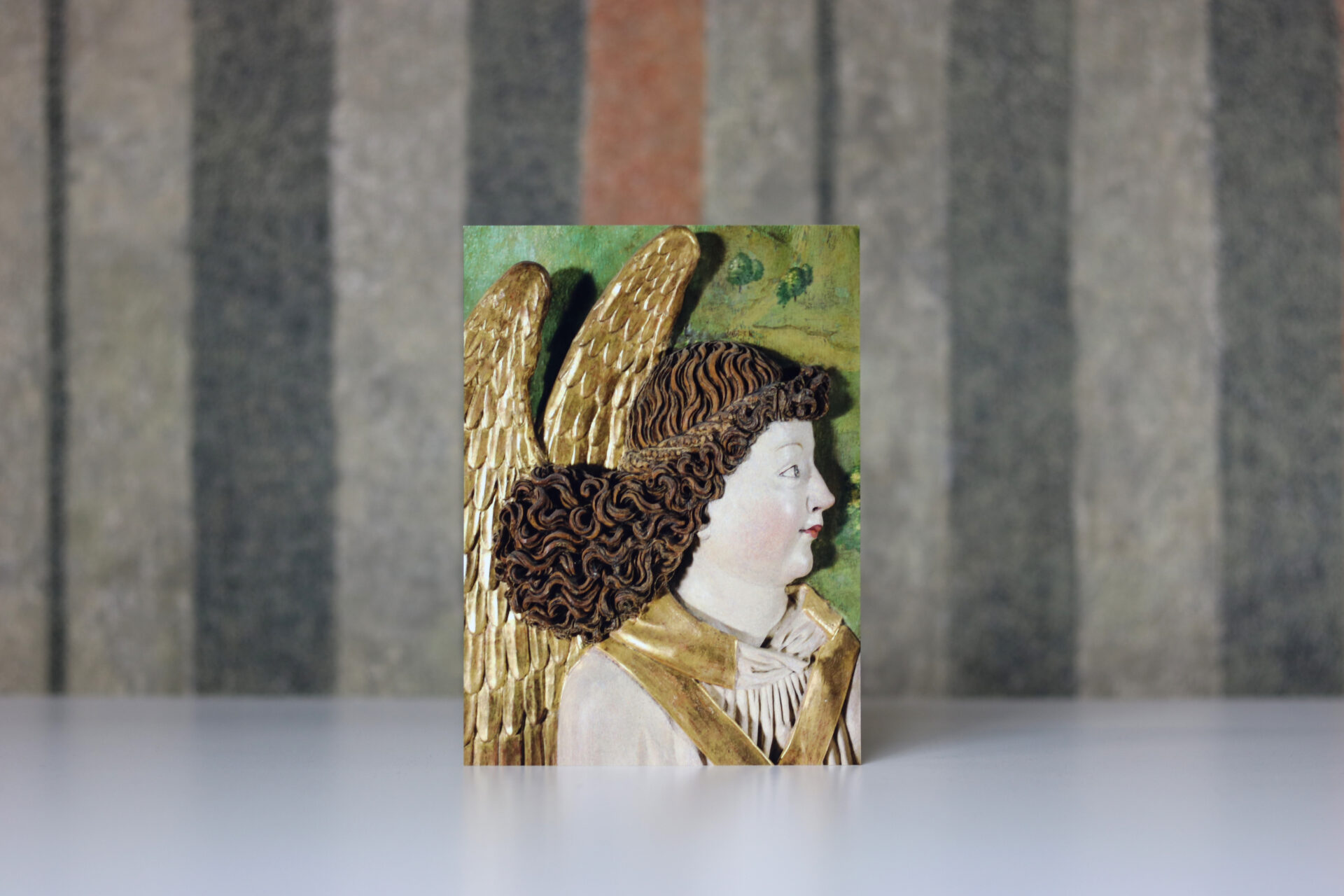 Pocztówka z portretem anioła z kwatery Zstąpienie do otchłani z ołtarza Wita Stwosza.
