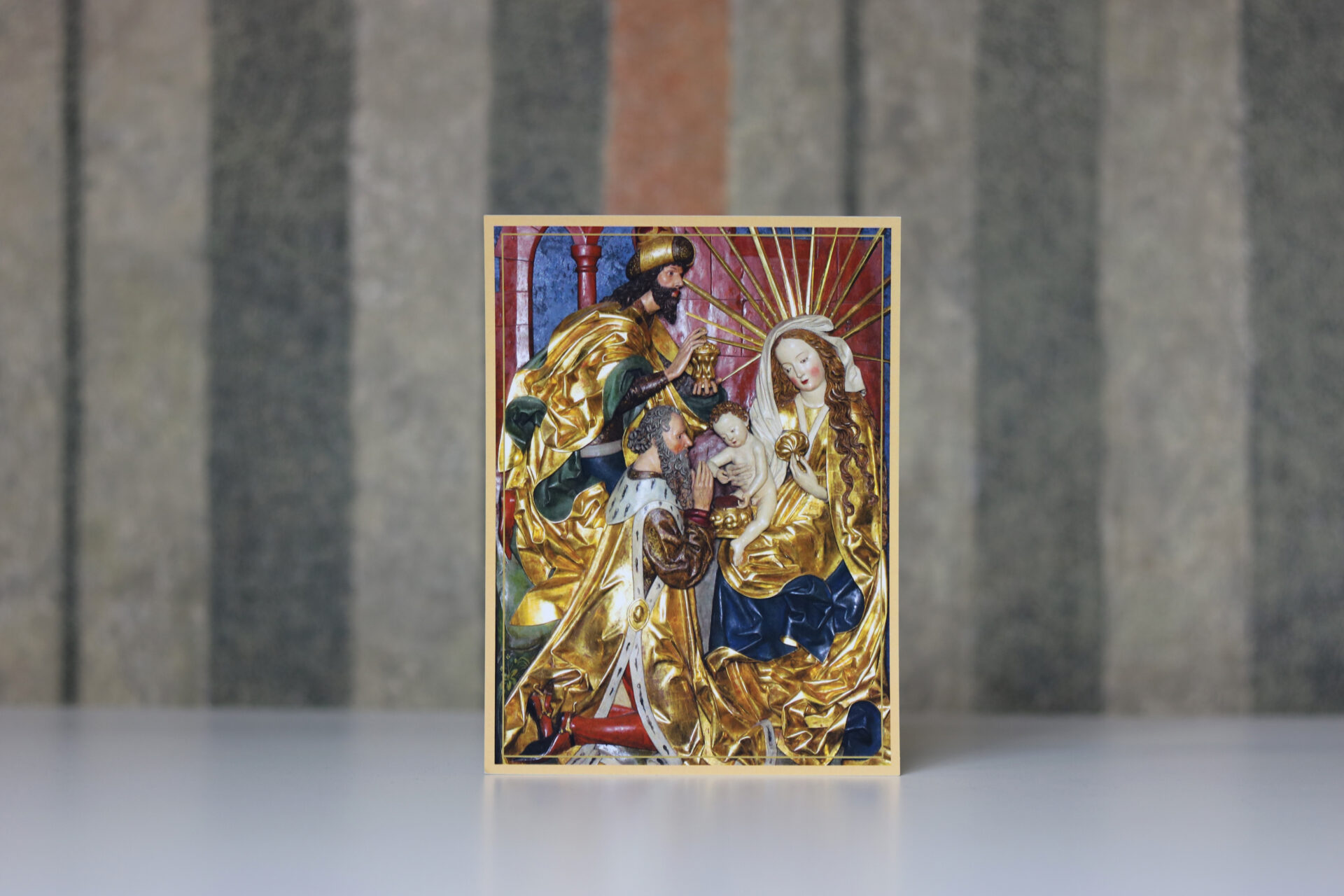 Pocztówka z fragmentem kwatery Boże Narodzenie z ołtarza Wita Stwosza.