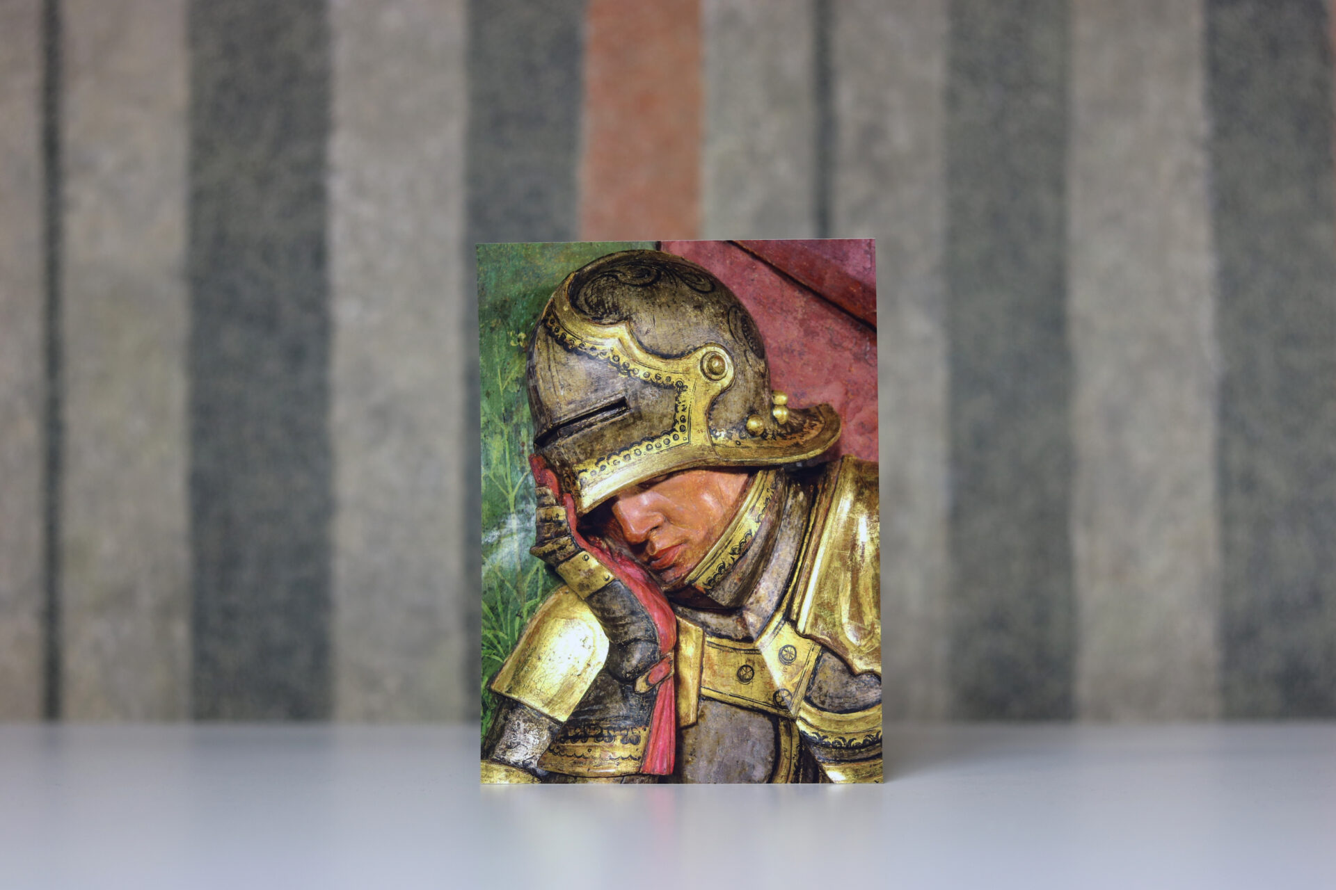 Pocztówka z śpiącym rycerzem z kwatery Zmartwychwstanie z ołtarza Wita Stwosza.