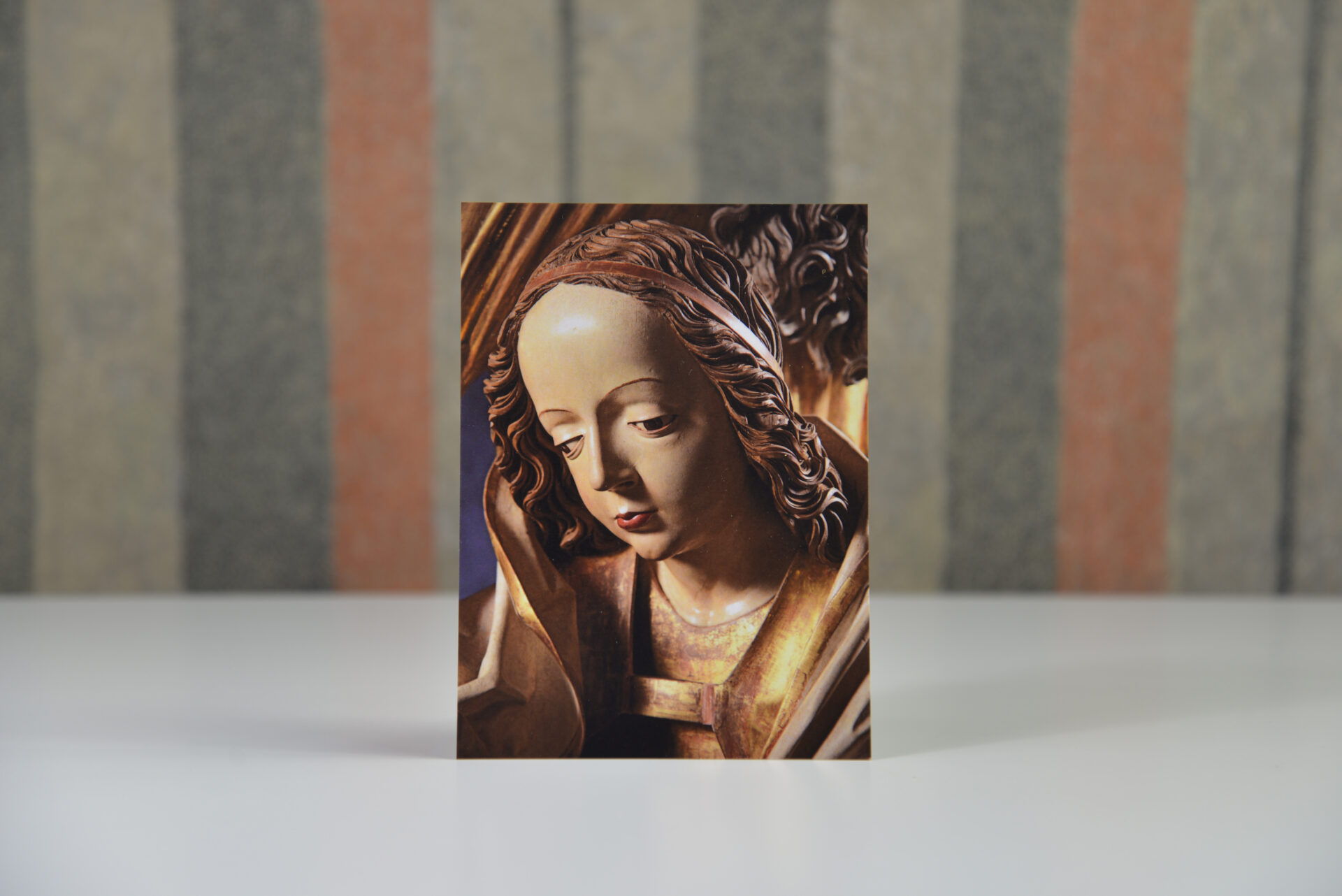 Pocztówka z twarzą Maryi ze sceny Zaśnięcia NMP z ołtarza Wita Stwosza.