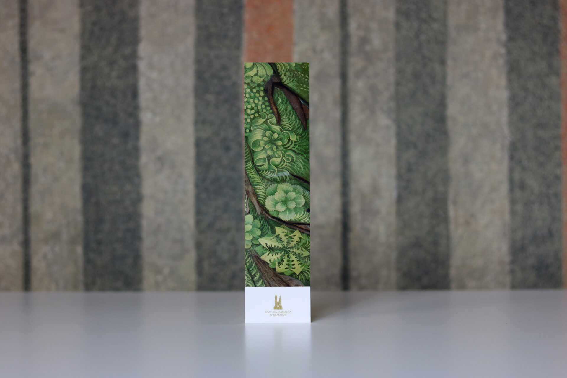 Kartonowa zakładka do książki z motywem roślinnym z kwatery Trzy Marie u grobu z ołtarza Wita Stwosza.